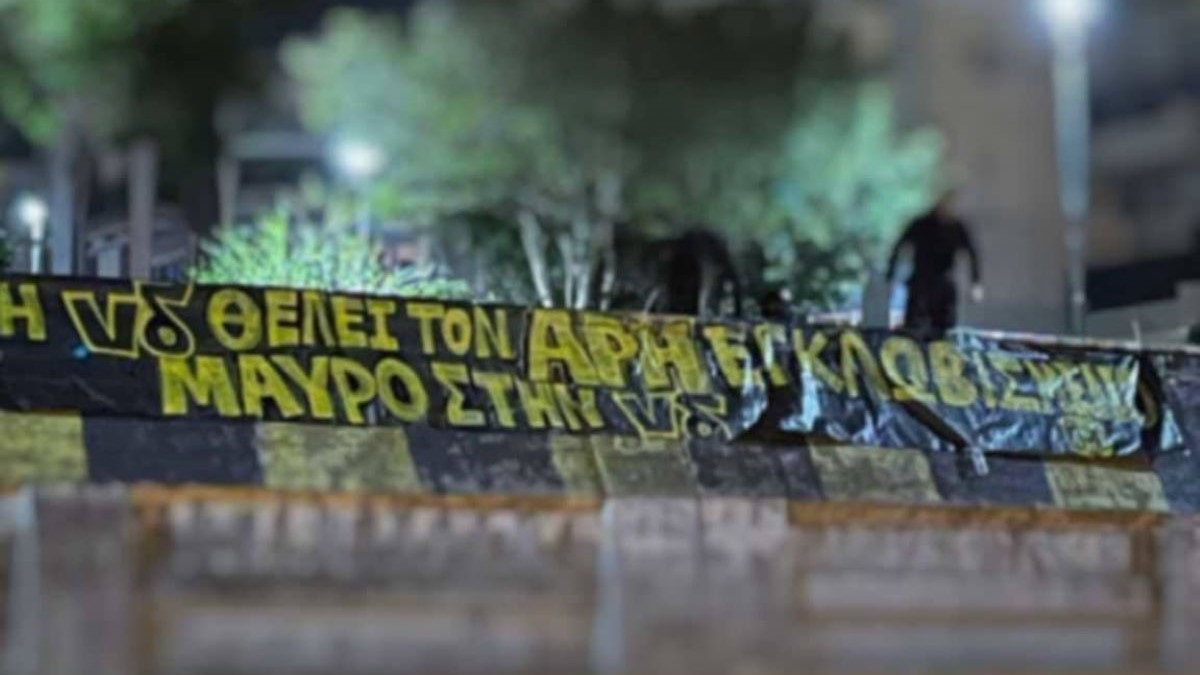 Φίλοι του Άρη κρέμασαν πανό σε διάφορα σημεία της πόλης, θέλοντας να στείλουν τα μηνύματά τους στην Κυβέρνηση της ΝΔ.