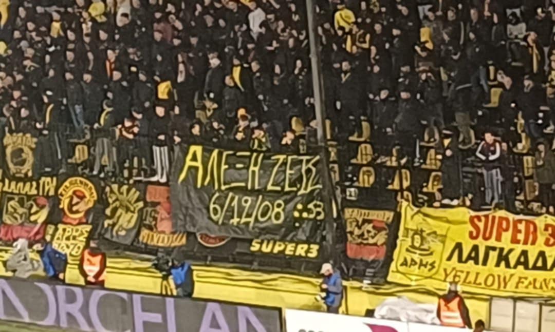 Πανό των οπαδών του Άρη στη μνήμη του Αλέξη Γρηγορόπουλου (pic)