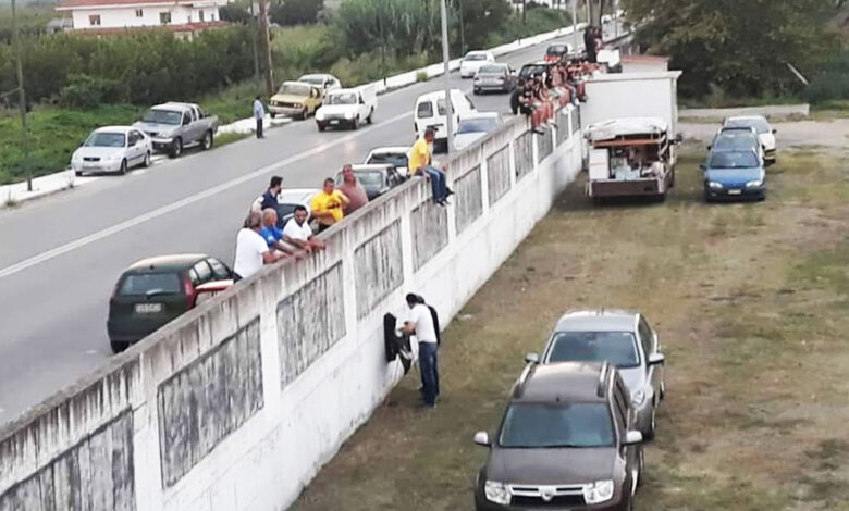 Δείτε την χαρακτηριστική φωτογραφία από τον… μαντρότοιχο του ΔΑΚ Σκύδρας, καθώς η είσοδος στον χώρο του γηπέδου απαγορεύεται.