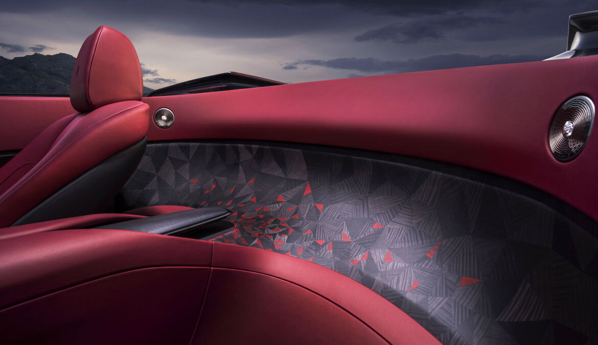 Η ασυμμετρία των 533 κόκκινων βαμμένων εξαρτημάτων είναι αίτημα των πελατών. Με το σύνολο να δημιουργεί ένα μοναδικό «κουκούλι» για τους επιβάτες, από το πίσω κρύσταλλο μέχρι το επιβλητικό ταμπλό. Η καμπίνα μιας Rolls-Royce La Rose Noire Droptail συναρμολογείται από έναν τεχνίτη, τον μόνο εκπαιδευμένο σε αυτό το πρότζεκτ που απαιτεί μεγάλη συγκέντρωση.