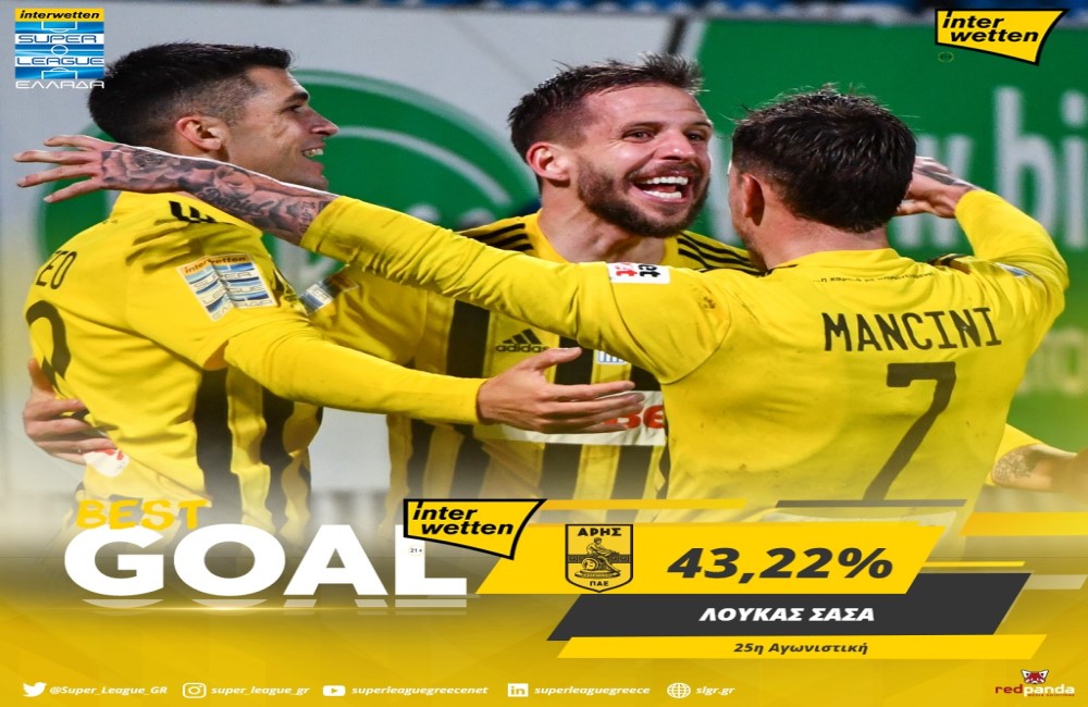 Ο Λούκας Σάσα κέρδισε τον τίτλο του καλύτερου τέρματος στο διπλό του Άρη επί του Αστέρα Τρίπολης, για την 25η αγωνιστική του πρωταθλήματος!