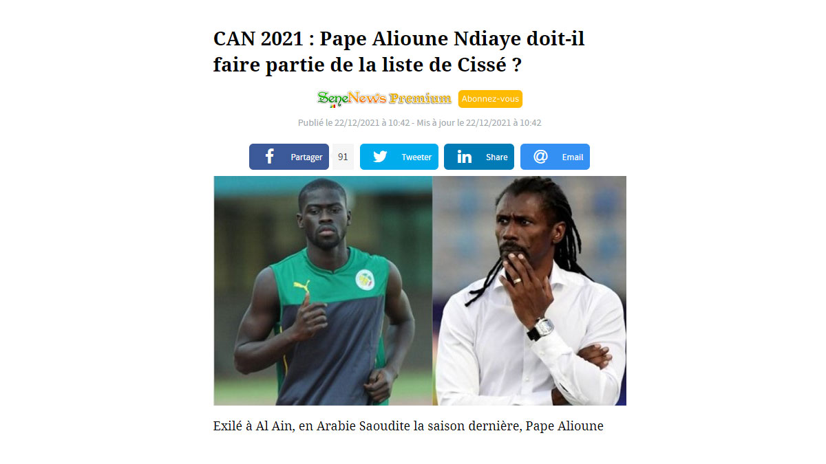 Ο Εντιαγέ επιστρέφοντας στην Ευρώπη μπήκε και πάλι στο «μικροσκόπιο» του Αλιού Σισέ για την Εθνική Σενεγάλης, ενόψει του επερχόμενου Africa Cup Of Nations.