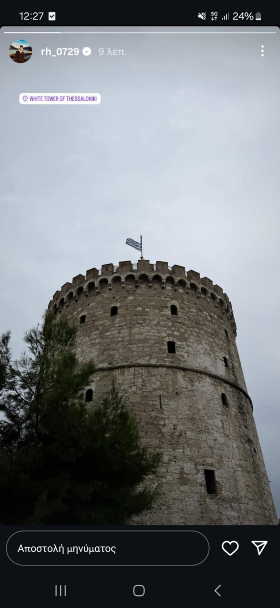 Μάλιστα πριν από λίγο δημοσίευσε εικόνα από τη Θεσσαλονίκη, όπου έχει φτάσει.