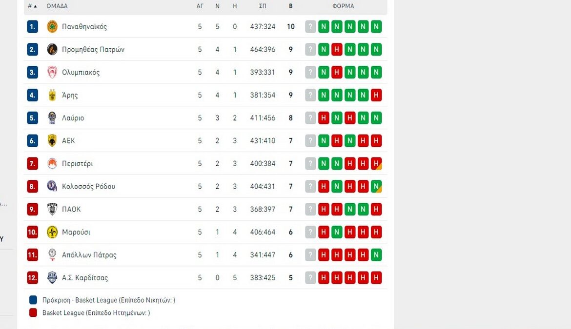 Ο Παναθηναϊκός δεν δυσκολεύτηκε απέναντι στον Απόλλωνα Πάτρας, κέρδισε εντός έδρας με 112-60 και έτσι ολοκληρώθηκε η 5η αγωνιστική του πρωταθλήματος. Στον βαθμολογικό πίνακα, ο Άρης είναι στην δεύτερη θέση, ισοβαθμώντας με Ολυμπιακό και Προμηθέα. Δείτε…