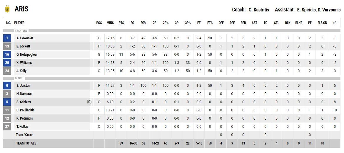 Το ημίχρονο ολοκληρώθηκε στο Παλέ και ο Άρης είναι μπροστά με 39-36. Πρώτοι σκόρερ από τους “κίτρινους” είναι οι Νετζήπογλου και Κέλι με 11 και 10 πόντους αντίστοιχα. Ο ΠΑΟΚ άρχισε με 5/8 τρίποντα και αυτό ήταν “πληγή” για τον Άρη, ο οποίος μετά “γύρισε” το ματς. Στο γήπεδο ακούστηκε και σύνθημα για τον Άλκη. “Αλκη ζωντανός για πάντα Αρειανός”, φώναζαν οι οπαδοί των “κιτρίνων”. Δείτε τα στατιστικά του πρώτου ημιχρόνου για τον Άρη.