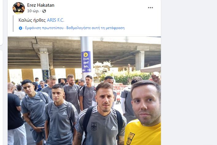 Είναι γνωστή η τρέλα που έχει ο Ερέζ Χακατάν με τον Άρη. Είναι οπαδός της Μακάμπι Τελ Αβίβ αλλά λατρεύει τον σύλλογο της Θεσσαλονίκης. Και το έδειξε για μια ακόμη φορά… Καλωσόρισε την ομάδα του Άρη κατά την άφιξή της στο Τελ Αβίβ, αλλά και τον Χρήστο Βλάχο από τον Α.Σ. Άρης.