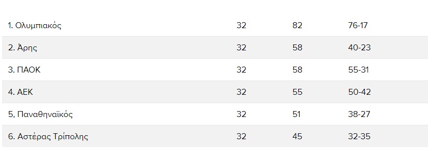 Ολοκληρώθηκε η 6η αγωνιστική των πλέι οφ της Super League με τον Άρη να παραμένει 2ος μαζί με τον ΠΑΟΚ ενώ στο -3 από τους “κιτρινόμαυρους” είναι η ΑΕΚ μετά την ήττα της από τον Ολυμπιακό.