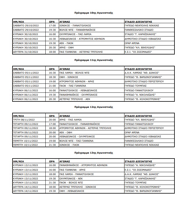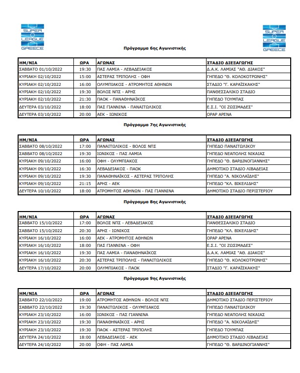 Η Super League ανακοίνωσε το πρόγραμμα των υπολειπόμενων αγωνιστικών, ως την ολοκλήρωση του πρώτου γύρου.