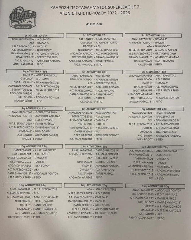Αναλυτικά το πρόγραμμα των δύο ομίλων της Super League 2: