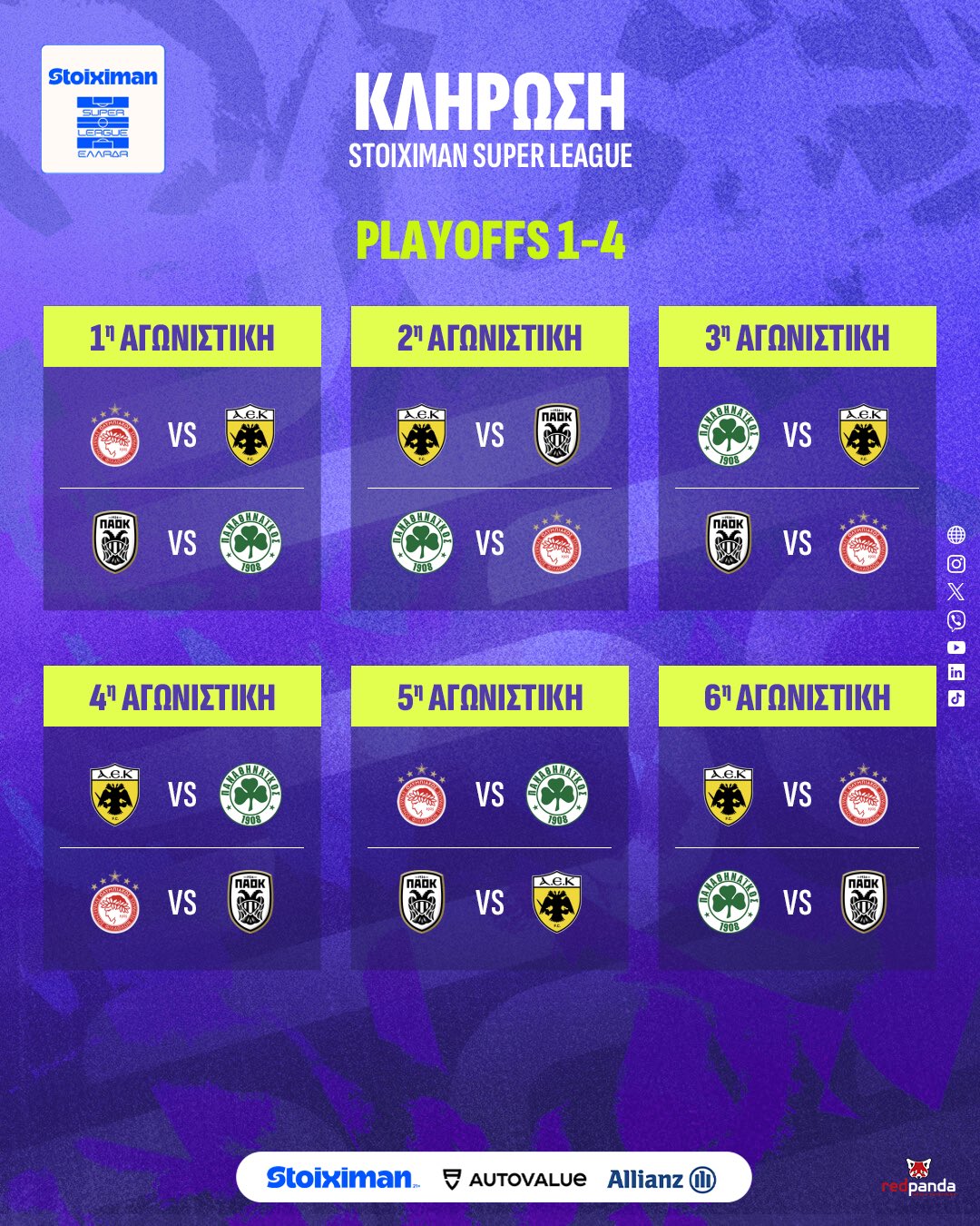 Διαβάστε αναλυτικά όλο το πρόγραμμα των πλέι οφ για τις θέσεις 1-4: