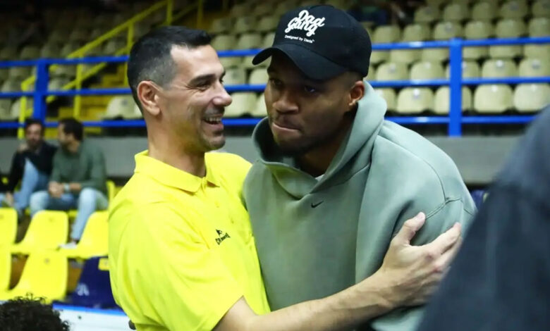 Θερμό τετ α τετ είχαν Γιάννης Αντετοκούνμπο και Νίκος Ζήσης στο χθεσινό φιλικό του Άρη στο Περιστέρι.