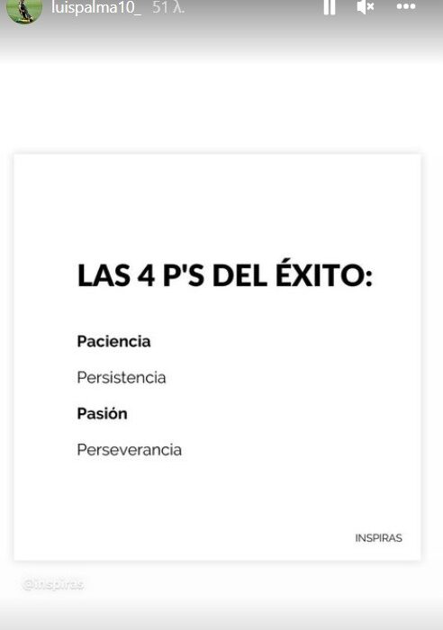 Ο μεσοεπιθετικός του Άρη που βρίσκεται στην Ονδούρα για τους αγώνες της εθνικής ομάδας της χώρας του στο Nations League έγραψε τα εξής: υπομονή, επιμονή, πάθος και αποφασιστικότητα.
