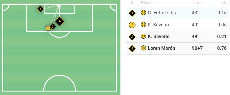 Σε ότι έχει να κάνει με τις φορές που η ομάδα του Μάντζιου δεν σκόραρε όσο αναμενόταν, ξεχωρίζει το ματς με τη Λαμία όπου ο Άρης είχε 3,6 expected goals και πέτυχε μόλις δύο τέρματα.