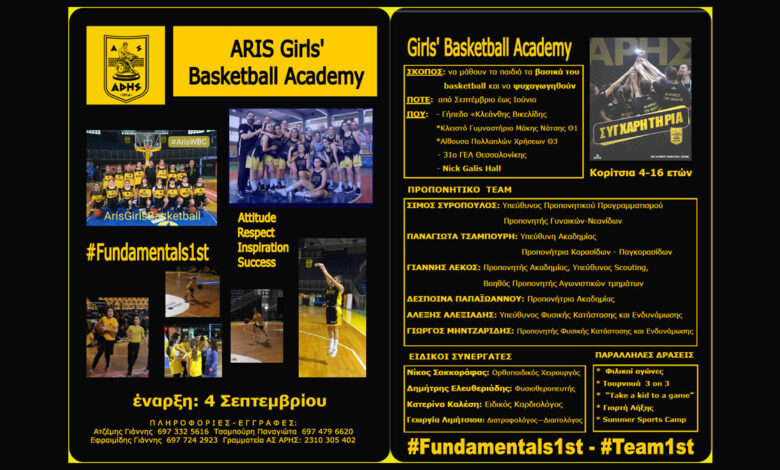Ο Α.Σ. Άρης και το τμήμα Μπάσκετ Γυναικών ανακοινώνουν την έναρξη προπονήσεων και εγγραφών της Ακαδημίας Μπάσκετ Κοριτσιών «Aris Girls…