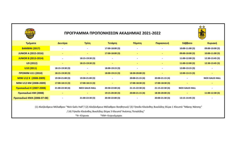 Ακαδημία Μπάσκετ: Το ετήσιο πρόγραμμα προπονήσεων