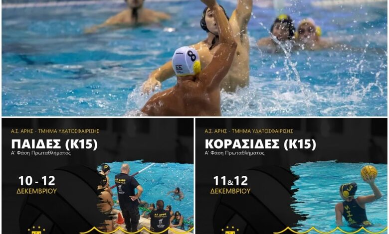 Ανοίγει σήμερα Παρασκευή (3/12) η αυλαία της πρώτης φάσης του πρωταθλήματος Υδατοσφαίρισης Εφήβων. Ο Άρης αγωνίζεται στον Όμιλο Θεσσαλονίκης, μαζί…