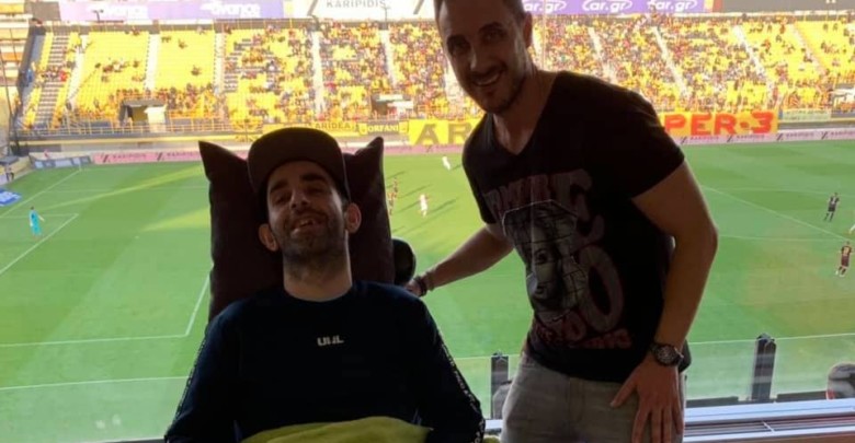 Δίπλα στον φίλο του Άρη, Γιώργο, από την Κατερίνη στέκεται κατάστημα της Nova για να μπορέσει να συνεχίσει να βλέπει…