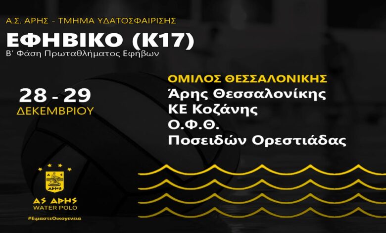 Ξεκινά αύριο Τρίτη 28/12 και θα ολοκληρωθεί την Τετάρτη 29/12 η β’ φάση του Εφηβικού Πρωταθλήματος Υδατοσφαίρισης (Κ17). Ο Άρης…
