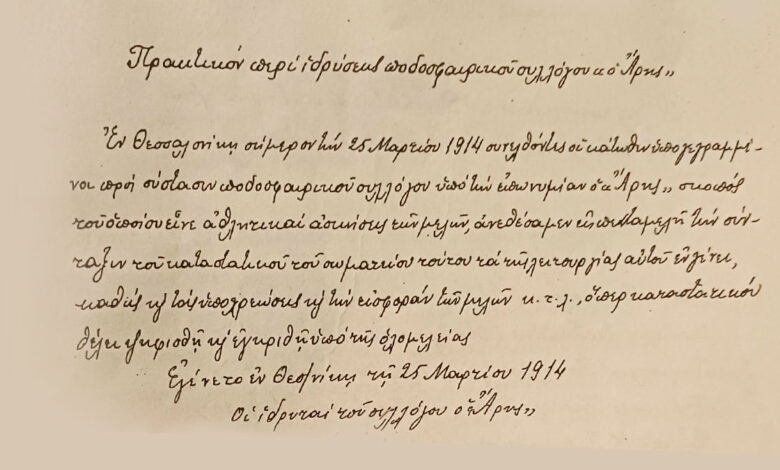 Το ιδρυτικό καταστατικό του συλλόγου: “Εγένετο εν Θεσσαλονίκη ο Άρης”!