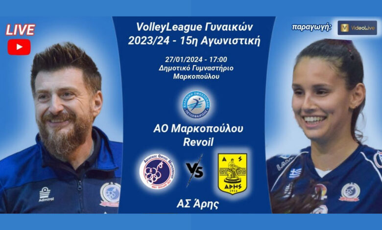 Η ομάδα βόλεϊ γυναικών του Άρη φιλοξενείται στο Μαρκόπουλο από την τοπική ομάδα για την 15η αγωνιστική της Volley League…