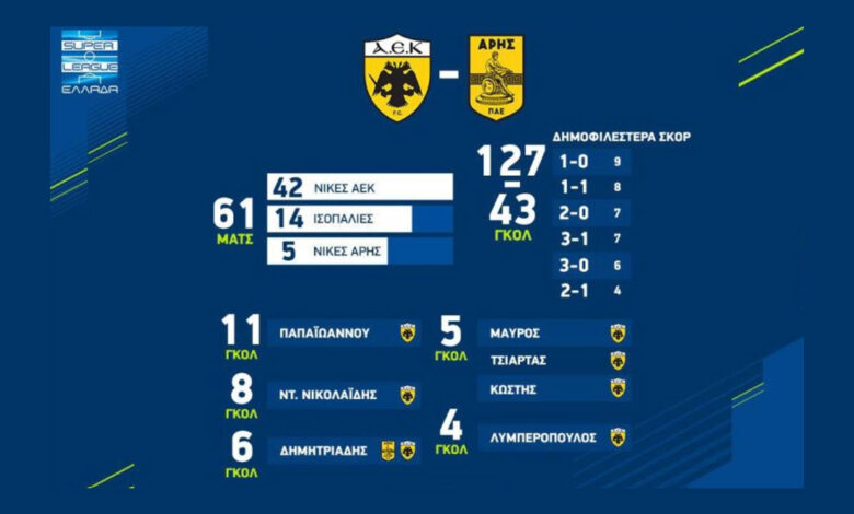 Το ΑΕΚ – Άρης μέσα από τα στατιστικά στοιχεία της Super League