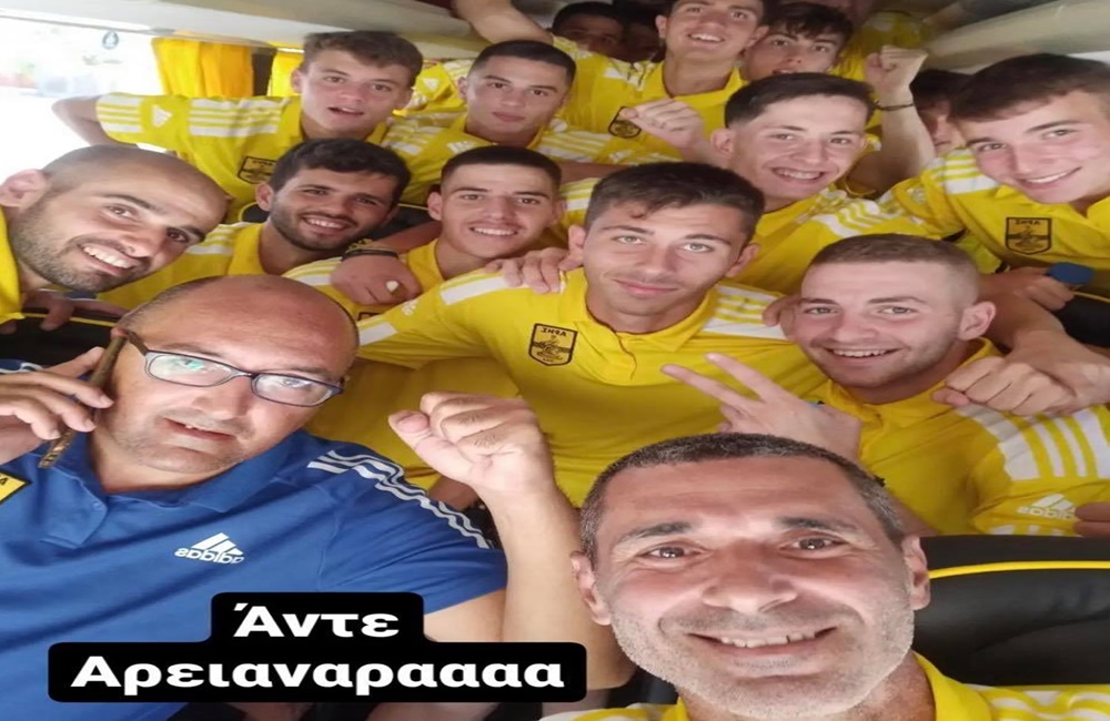 Ο ίδιος γιόρτασε μαζί με τους παίκτες του και τη διοίκηση μέσα στο πούλμαν, κάνοντας μάλιστα ποστάρισμα στα social media και γράφοντας “Άντε Αρειανάρα”.