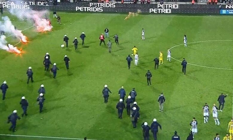 Οι οπαδοί του ΠΑΟΚ έκαναν “ντου”, έγιναν απίστευτα επεισόδια αλλά παρ’ όλα αυτά συνεχίστηκε το ματς. Η ΕΛ.ΑΣ. προχώρησε σε τέσσερις συλλήψεις, στο σκηνικό πολέμου που επικράτησε στην Τούμπα. Φαντάζουν… λίγες, για όσα έγιναν.