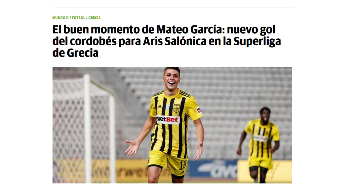 Αυτό παρατηρεί μεταξύ άλλων η ιστοσελίδα lavoz.com.ar που στο άρθρο της για τον παίκτη του Άρη έχει τίτλο: «Καλές στιγμές για τον Ματέο, νέο γκολ με τον Άρη στην Super League»«