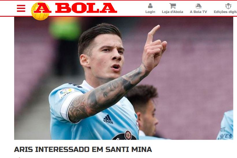 Δεν είναι μόνο οι Ισπανοί που αναφέρονται στο θέμα του πιθανού “γάμου” του Μίνα με τον Άρη. Με το ζήτημα ασχολούνται και στην Πορτογαλία, με την γνωστή “A’ Bola” να έχει άρθρο για τον 26χρονο παίκτη και τους “κίτρινους”.