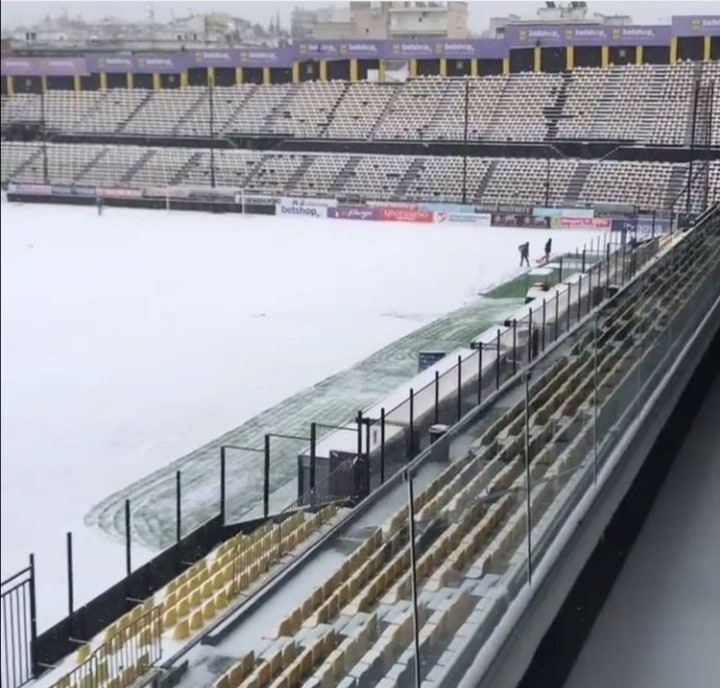 Αρκετό χιόνι, προσπάθειες για καθαρισμό και το γήπεδο γράφει… Άρης (photos)