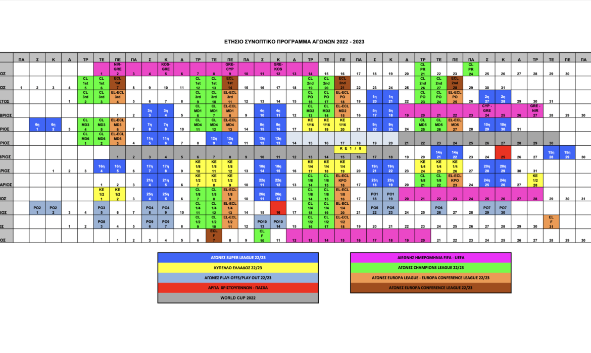 Γνωστές έγιναν οι ημερομηνίες των αγωνιστικών για τη Super League της σεζόν 2022/2023.
