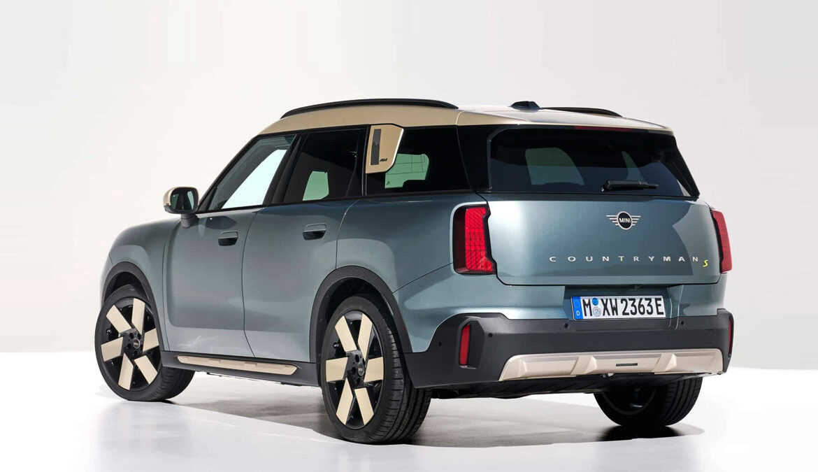 Συνεχίζοντας, στο προφίλ του αυτοκινήτου ξεχωρίζει η επανασχεδιασμένη κολόνα C, που ανάλογα με το επιλέξιμο επίπεδο εξοπλισμού περιλαμβάνει ορισμένα διακριτικά σύμβολα. Oι ζάντες έχουν μεγαλώσει, αγγίζοντας πλέον τις 20 ίντσες, ενώ στο πίσω μέρος τα φωτιστικά σώματα είναι κι εδώ τετραγωνισμένα. Συνολικά, οι καμπύλες του απερχόμενου Countryman έχουν αντικατασταθεί από ακμές, οι οποίες πλαισιώνουν τη νέα ταυτότητα του αυτοκινήτου, που δείχνει να απομακρύνεται από εκείνη του MINI χάτσμπακ αλλά και του κλασικού Mini.