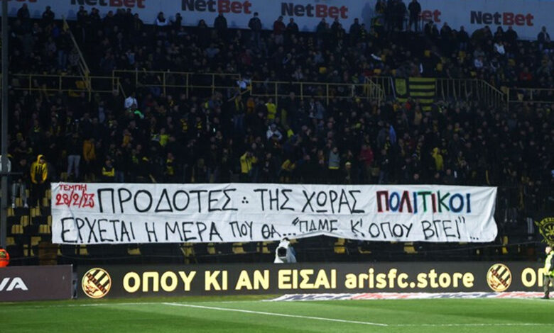 To πανό φίλων του Άρη για τους πολιτικούς (pic)