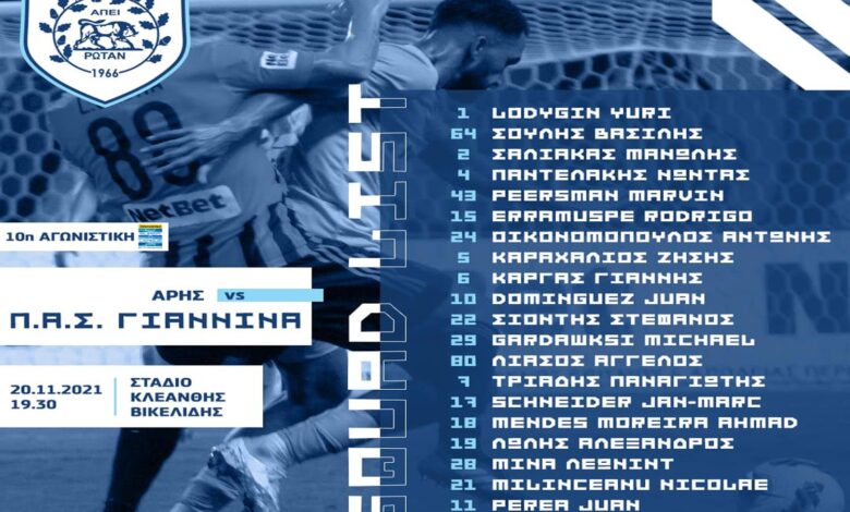 Εκτός αποστολής για λόγους τακτικής έμειναν οι Αθανασίου, Καραγιάννης, Ρίζος και Κύρκος.