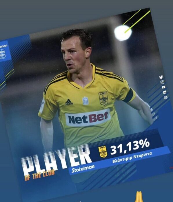 Ο κόσμος ψήφισε τον Βλάντιμιρ Νταρίντα ως «Player of the Club» στη σχετική ψηφοφορία της Super League για τη σεζόν που ολοκληρώθηκε παρότι ήρθε στον Άρη τη χειμερινή μεταγραφική περίοδο.