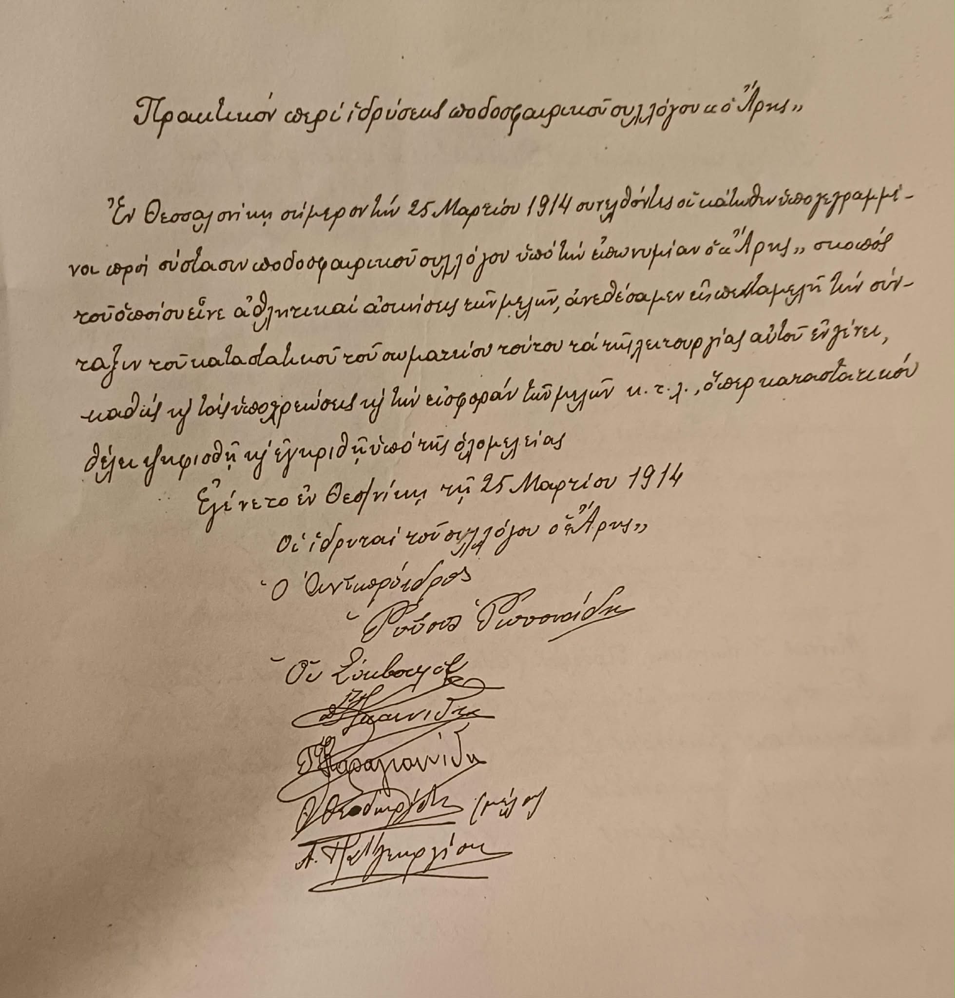 Τα πρακτικά ίδρυσης του Άρη Θεσσαλονίκης: