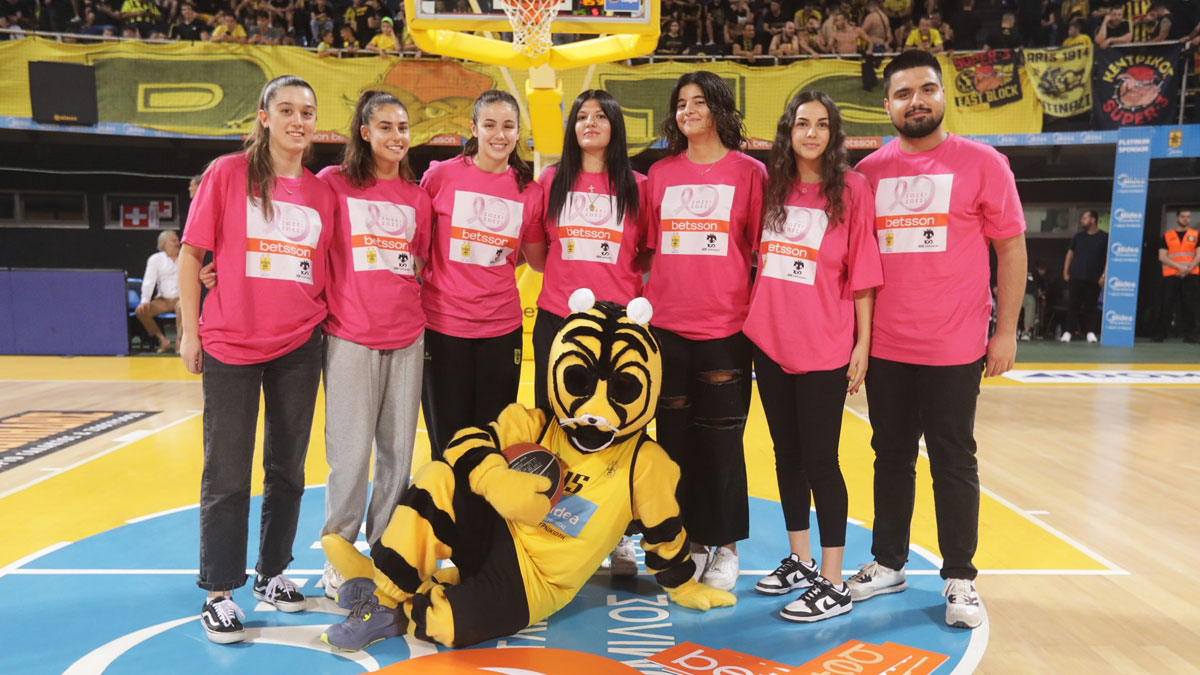 Μία σημαντική δράση για τον αγώνα της καταπολέμησης του καρκίνου του μαστού, έλαβε χώρα πριν την έναρξη και στο ημίχρονο του αγώνα ανάμεσα στον Άρη Midea και την ΑΕΚ Bettson.