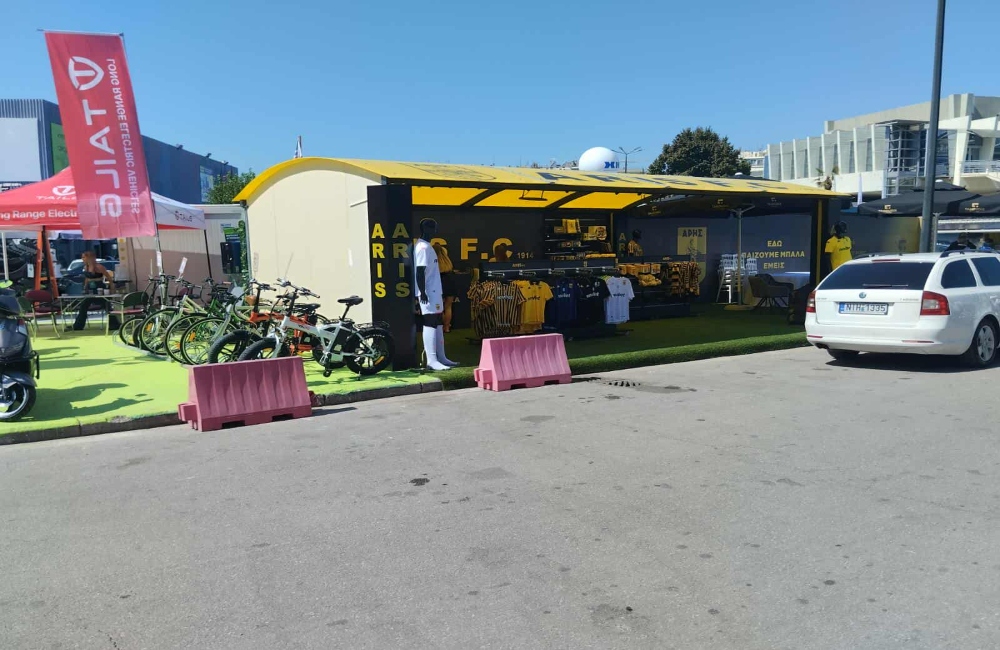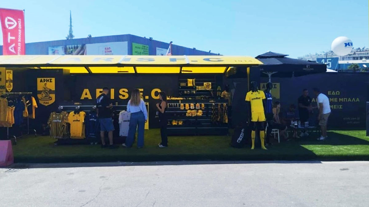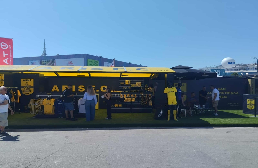 Μέσα στο περίπτερο λειτουργεί και η μπουτίκ της ΠΑΕ Άρης, όπου οι επισκέπτες μπορούν να προμηθευτούν τα επίσημα προϊόντα της ομάδας. Το περίπτερο θα είναι ανοιχτό από σήμερα Σάββατο 6 Σεπτεμβρίου, έως και την Κυριακή 14 Σεπτεμβρίου 2025.