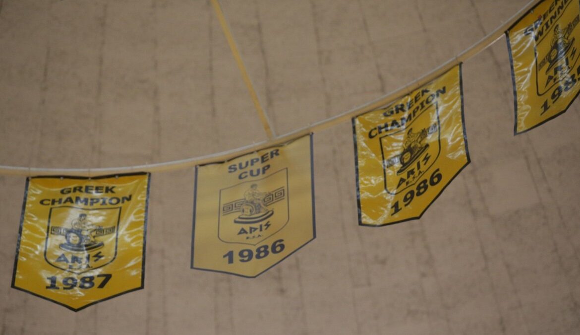 “Τι την έκανε την μπάλα ο Θεός”, φώναζε ο κόσμος, με τον Γκάλη -που ήταν με τα υπόλοιπα μέλη του “Αυτοκράτορα”- να λέει πως “η δύναμή μας είναι ο κόσμος” και να αφιερώνει το τρόπαιο στον Γιάννη Ιωάννιδη. Δείτε το λάβαρο που ανέβηκε στο ταβάνι του Παλέ…