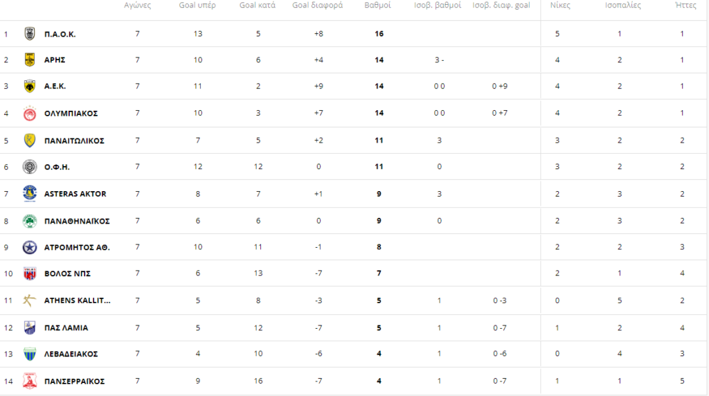 Μετά τα σημερινά αποτελέσματα ο Άρης βρίσκεται στη 2η θέση, σε ισοβαθμία με Ολυμπιακό και ΑΕΚ, από τους οποίους έχει πλεονέκτημα λόγω της νίκης επί των ερυθρόλευκων.