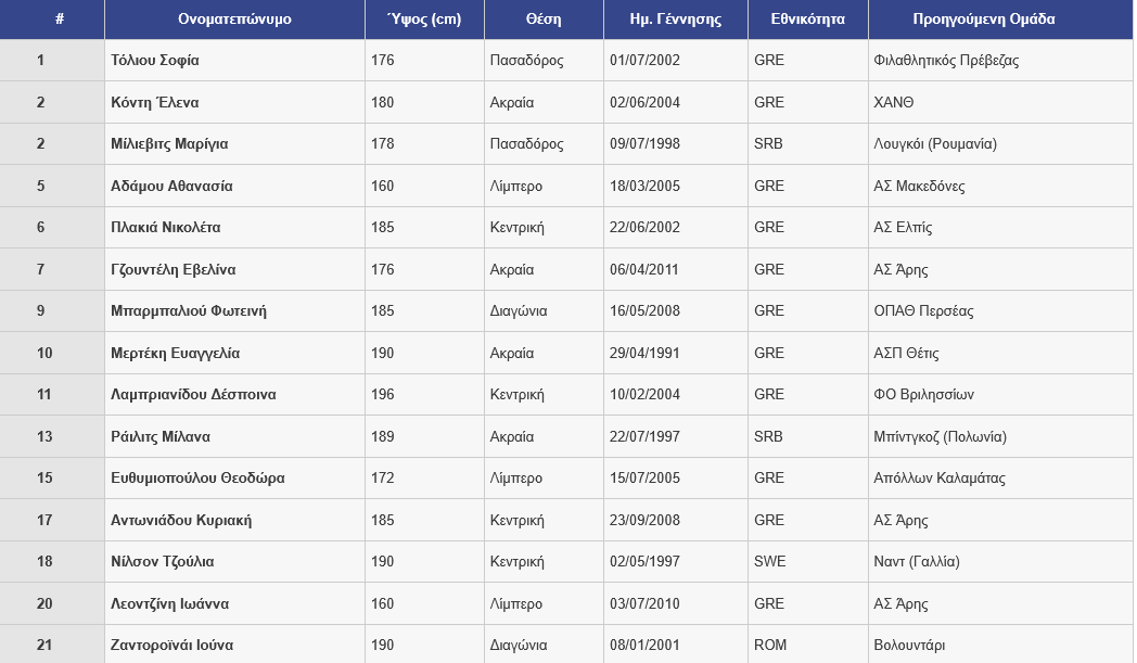 ΤΟ ΡΟΣΤΕΡ ΤΟΥ ΑΡΗ
